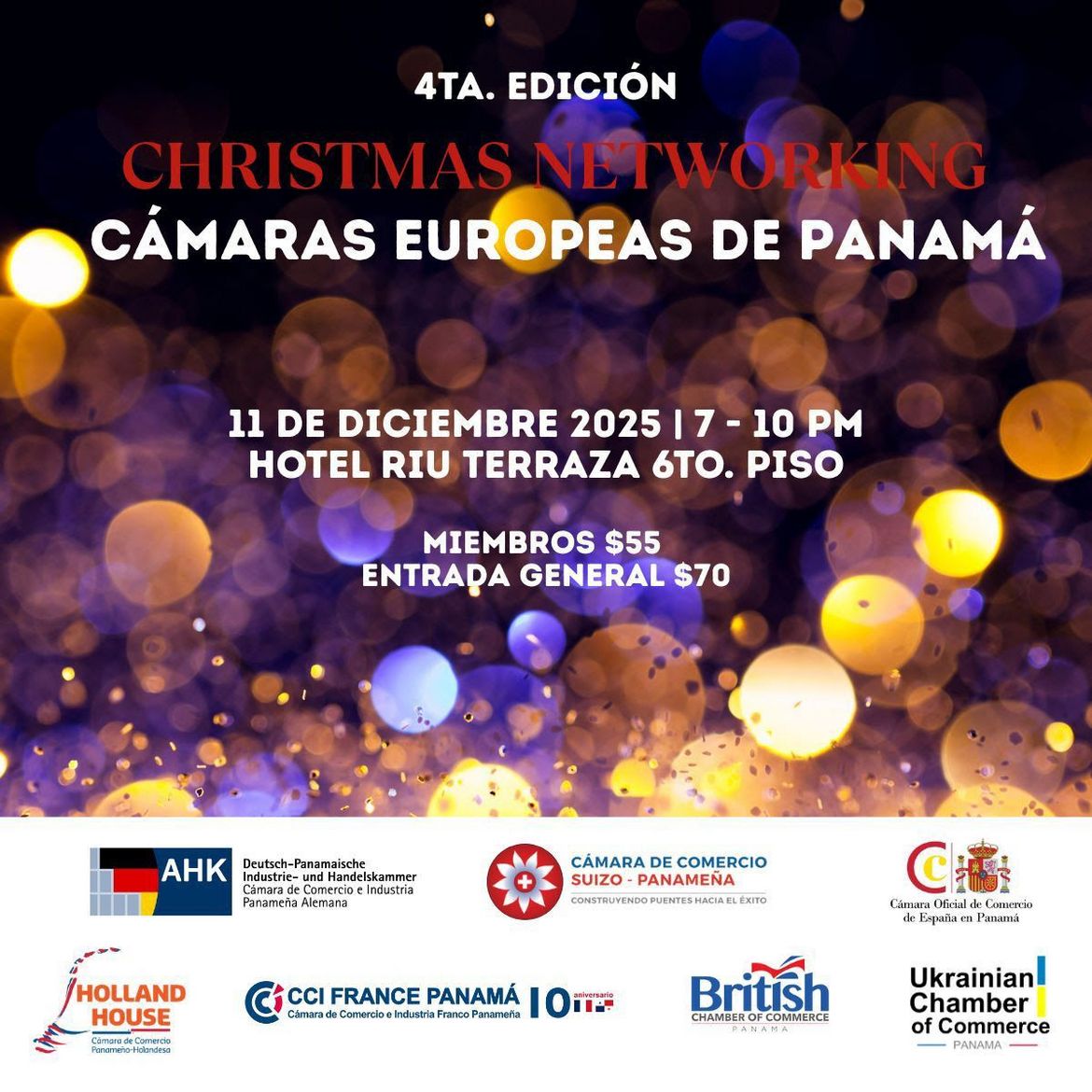 Les Chambres de Commerce Européennes au Panama ont le plaisir de vous inviter à la quatrième édition de notre Christmas Networking, une rencontre exclusive réunissant des dirigeants d’entreprises, des représentants institutionnels et des partenaires stratégiques dans une atmosphère festive et de haut niveau.